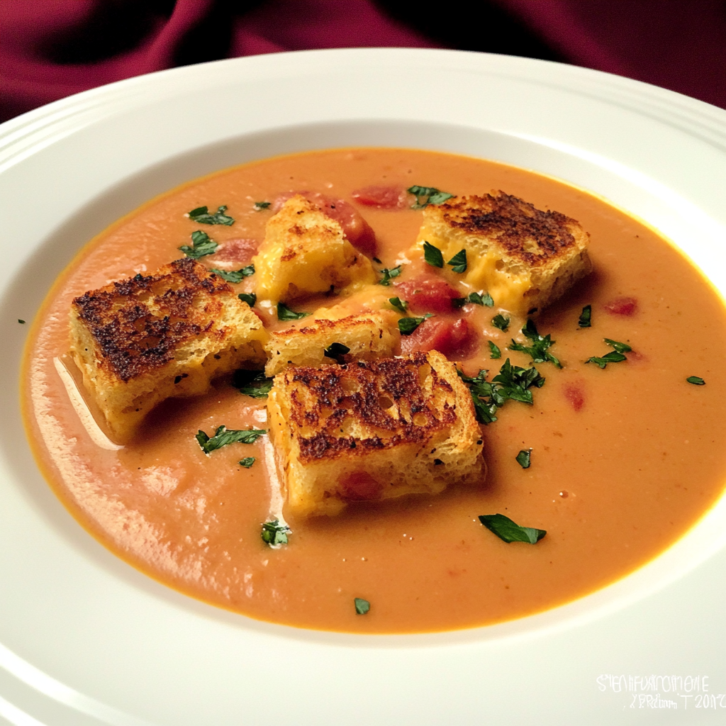 Creamy Tomato Soup with Grilled Cheese Croutons