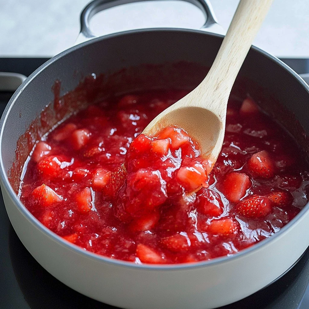 Make the Syrup: After simmering, it’s time to sweeten up our strawberry mixture. Add 1 cup of granulated sugar and 1 tablespoon of freshly squeezed lemon juice to the saucepan. Stir well until you see the sugar completely dissolve into the warm liquid—this should take just a couple of minutes. The blend of sugar and lemon will enhance the natural sweetness of the strawberries while adding a hint of brightness. Allow this mixture to simmer for another 5 minutes; during this time, you’ll notice it thickening slightly and becoming syrupy. This is where patience pays off as you wait for that perfect consistency.