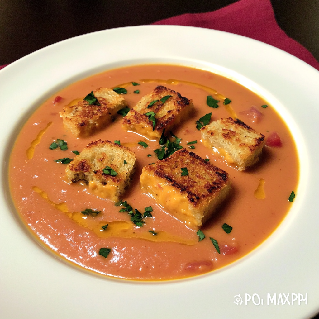 Indulge in the ultimate comfort food with this creamy tomato soup topped with crispy grilled cheese croutons. Perfectly rich and velvety, this soup captures the nostalgia of childhood lunches while delivering a modern twist. The crunchy, cheesy croutons bring delightful texture, making it an ideal dish for cozy evenings or rainy days. Easy to make and bursting with flavor, this recipe will warm your heart and soul, inviting endless variations to suit your taste.