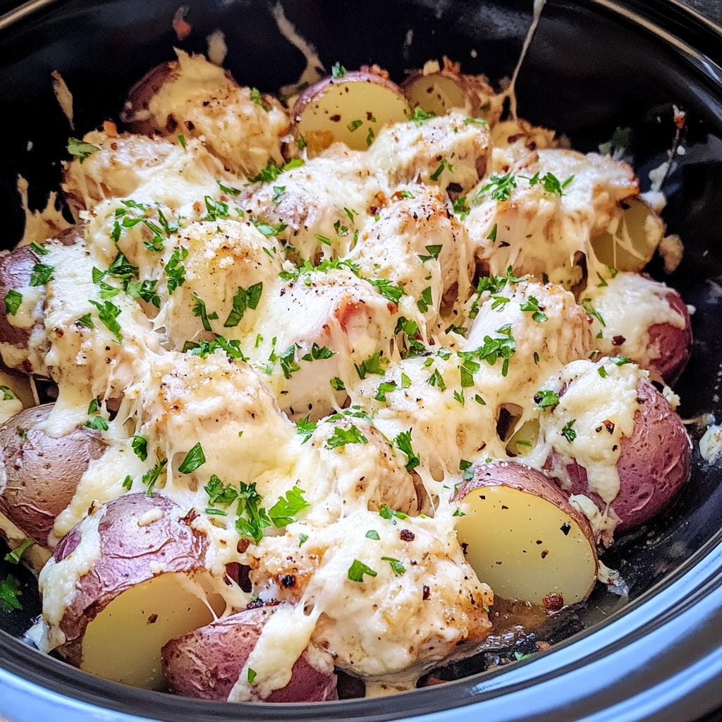 - The secret to perfecting Crockpot Garlic Parmesan Chicken and Potatoes lies in the slow cooking process