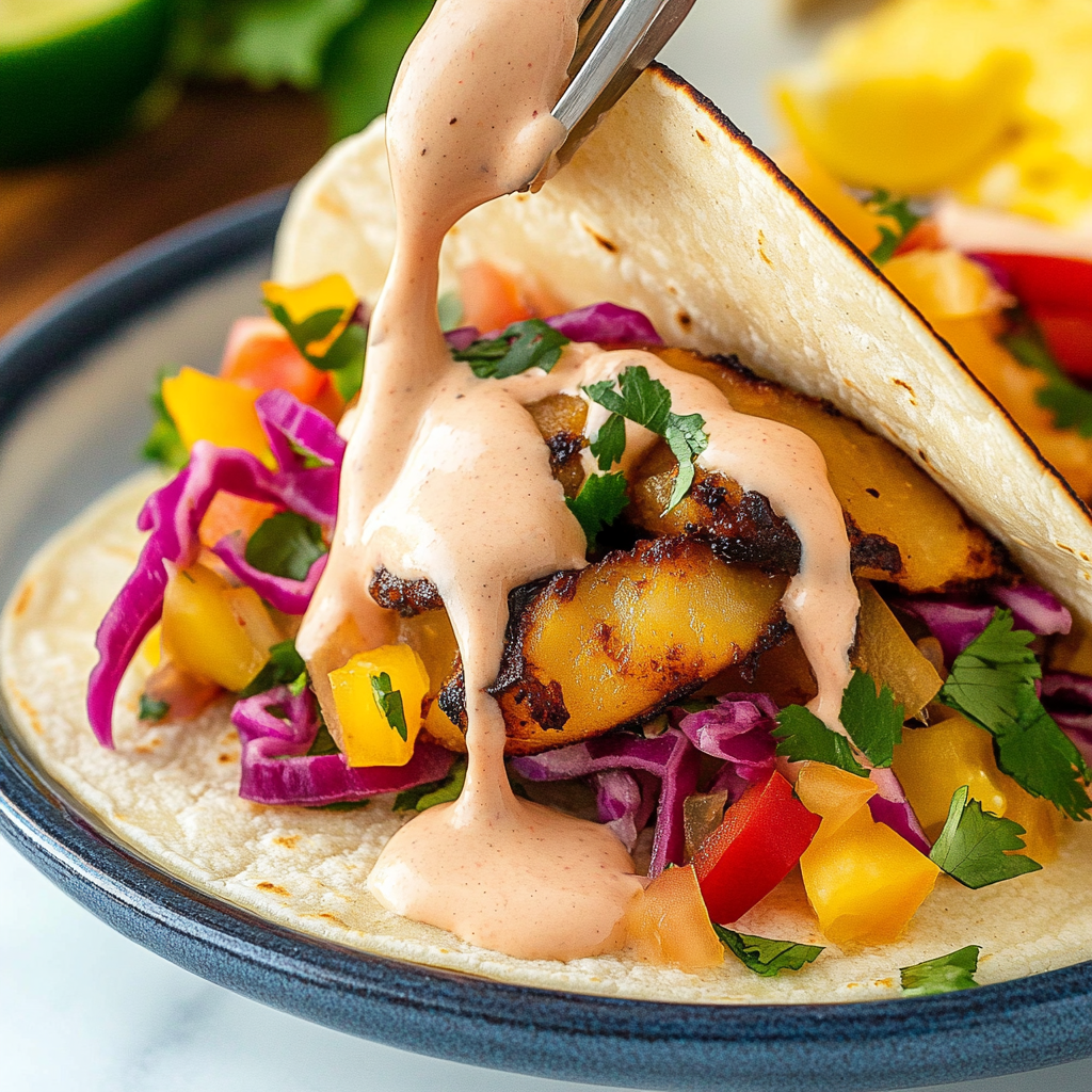 Create Your Fish Taco Sauce: In a bowl, mix Greek yogurt, Sriracha, garlic powder, honey or agave syrup, lime juice, salt, and pepper until smooth. Adjust seasoning based on your taste preference. For more inspiration, check out this honey glazed salmon recipe recipe.