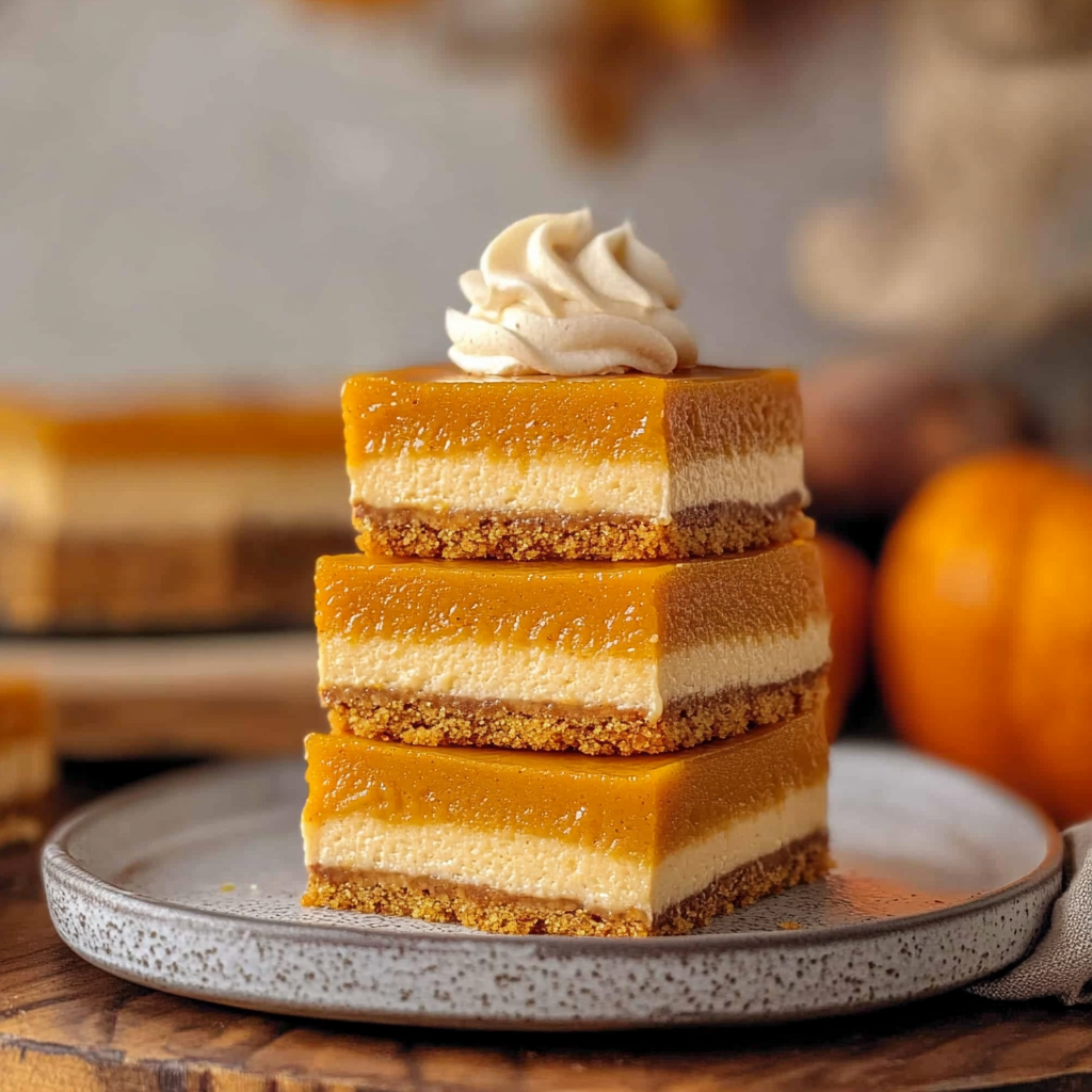 Pumpkin cheesecake bars are the ultimate fall dessert, blending the creamy richness of cheesecake with the warm spices of pumpkin pie. Nestled in a buttery graham cracker crust, these bars evoke cozy autumn vibes and are perfect for any occasion, from festive gatherings to a simple afternoon treat. Each bite is a delightful explosion of flavor that will leave your guests asking for seconds.