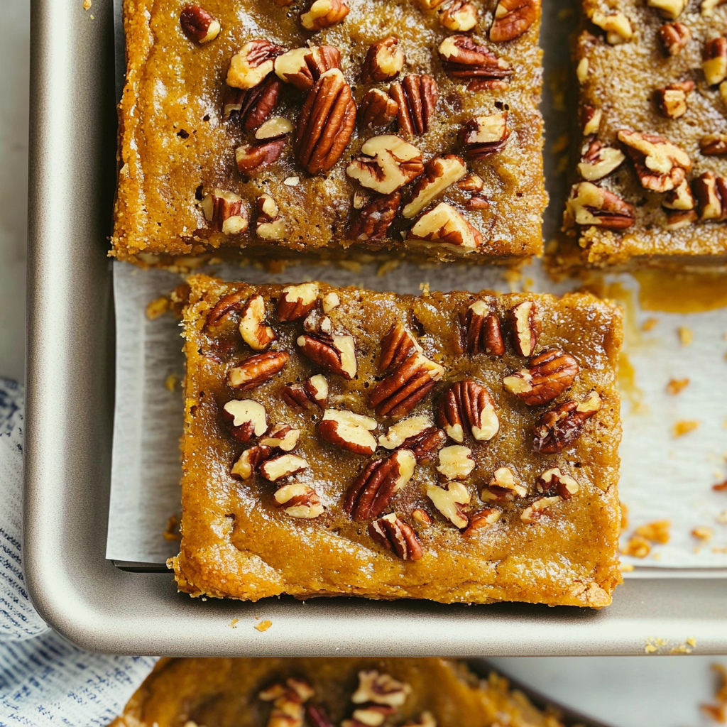 Now picture this: it’s Thanksgiving, and you’re surrounded by family. As you cut into these bars, everyone leans in, eyes wide with anticipation. You take a bite, and suddenly you’re on a flavor rollercoaster—warm spices dance on your tongue while the crunch of pecans adds that perfect textural contrast. Every bite is a celebration, whether it’s at the holiday table or just because it’s Tuesday.