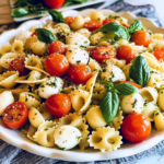 - This delightful Caprese Pasta Salad bursts with fresh flavors, effortlessly blending ripe tomatoes, creamy mozzarella, and fragrant basil