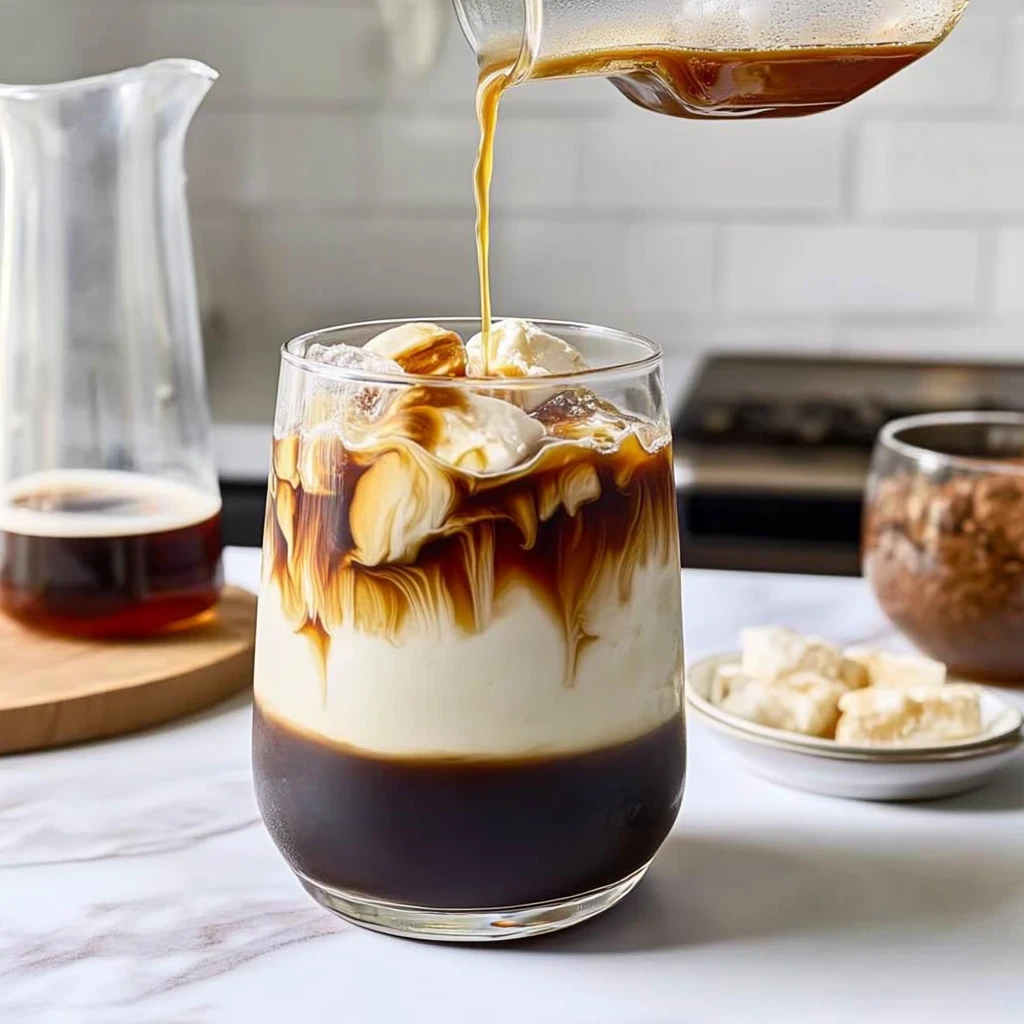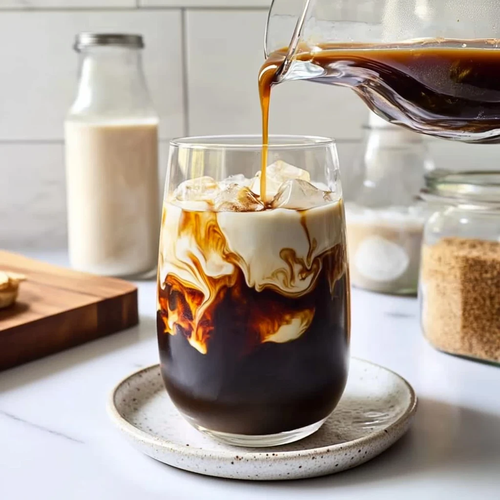 Mix Ingredients: Grab a large pitcher, and pour in the cooled coffee. Then, add 1 cup of milk or your preferred milk alternative—oat milk or almond milk works wonderfully if you’re looking for a dairy-free option. Next, sprinkle in 2 tablespoons of sugar; feel free to adjust this according to your sweetness preference! If you’re feeling adventurous, splash in 1 teaspoon of vanilla extract for an extra layer of flavor that elevates this iced coffee recipe. Stir everything together using a long spoon until the sugar fully dissolves; you’ll know it’s ready when the mixture becomes smooth and inviting.