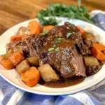 I often reminisce about Sunday dinners at my grandma’s house, where we all gathered around her table like moths to a flame, eager to indulge in her famous pot roast. With every bite, you could taste the love she poured into that dish. Whether it’s a holiday feast or just a regular Tuesday night, this pot roast brings smiles and happy bellies to all who partake.